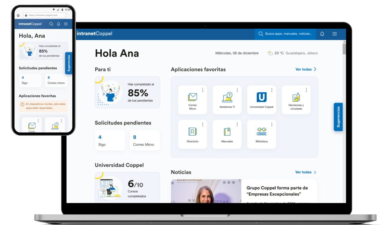 Our collaboration focused on reimagining the experience for one of their core tools, their intranet. As part of the project, we created Coltrane: Coppel Group’s Design Language System with the strategy to nurture, manage, and extend its use within the organization.